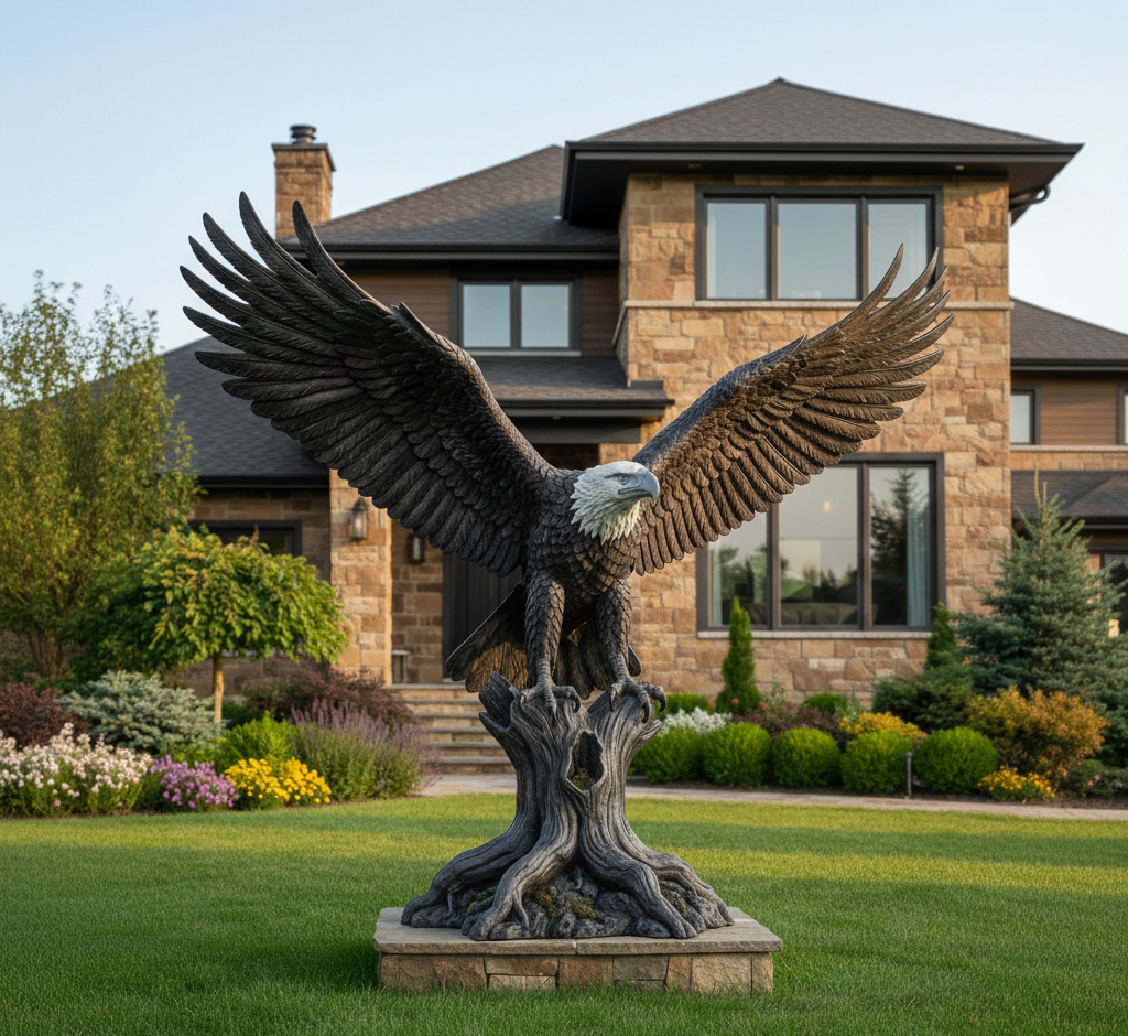 Height 8.9 feet, width (wingspan) 7.5 feet. Base 5.3 x 3.3 feet. Weight about 2700 pounds.