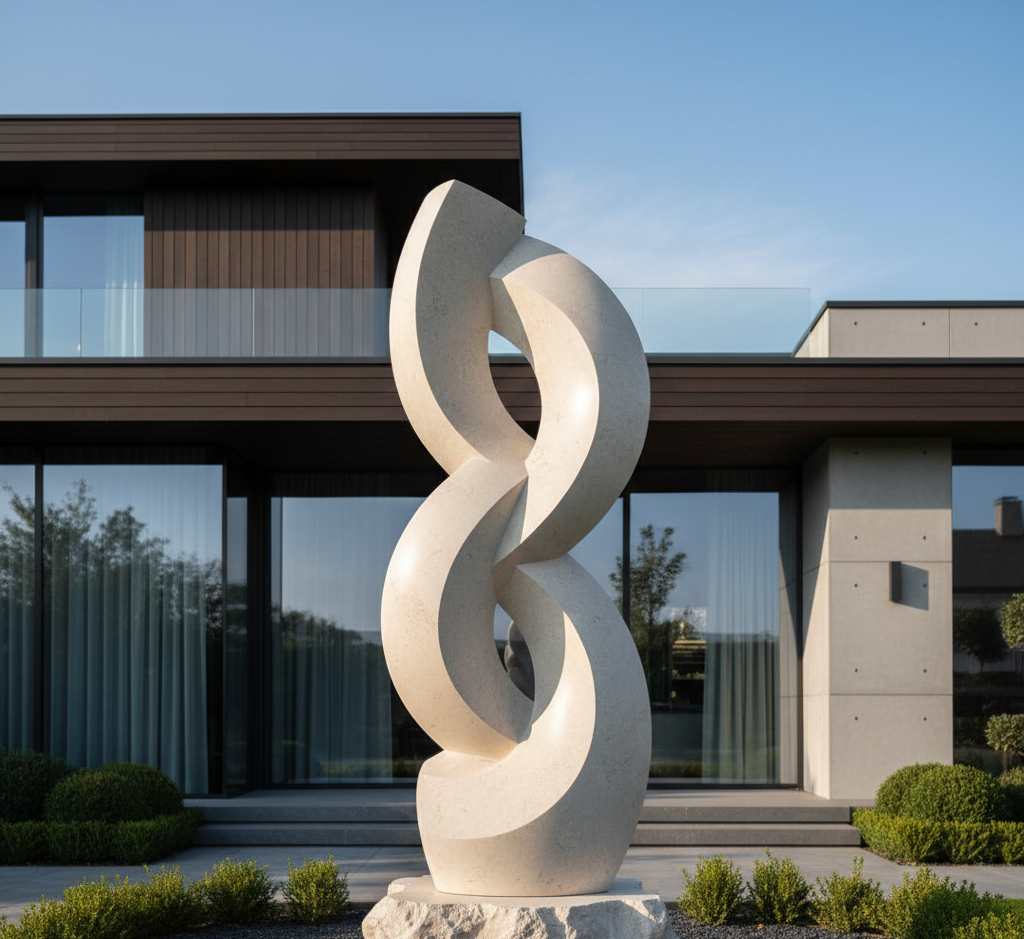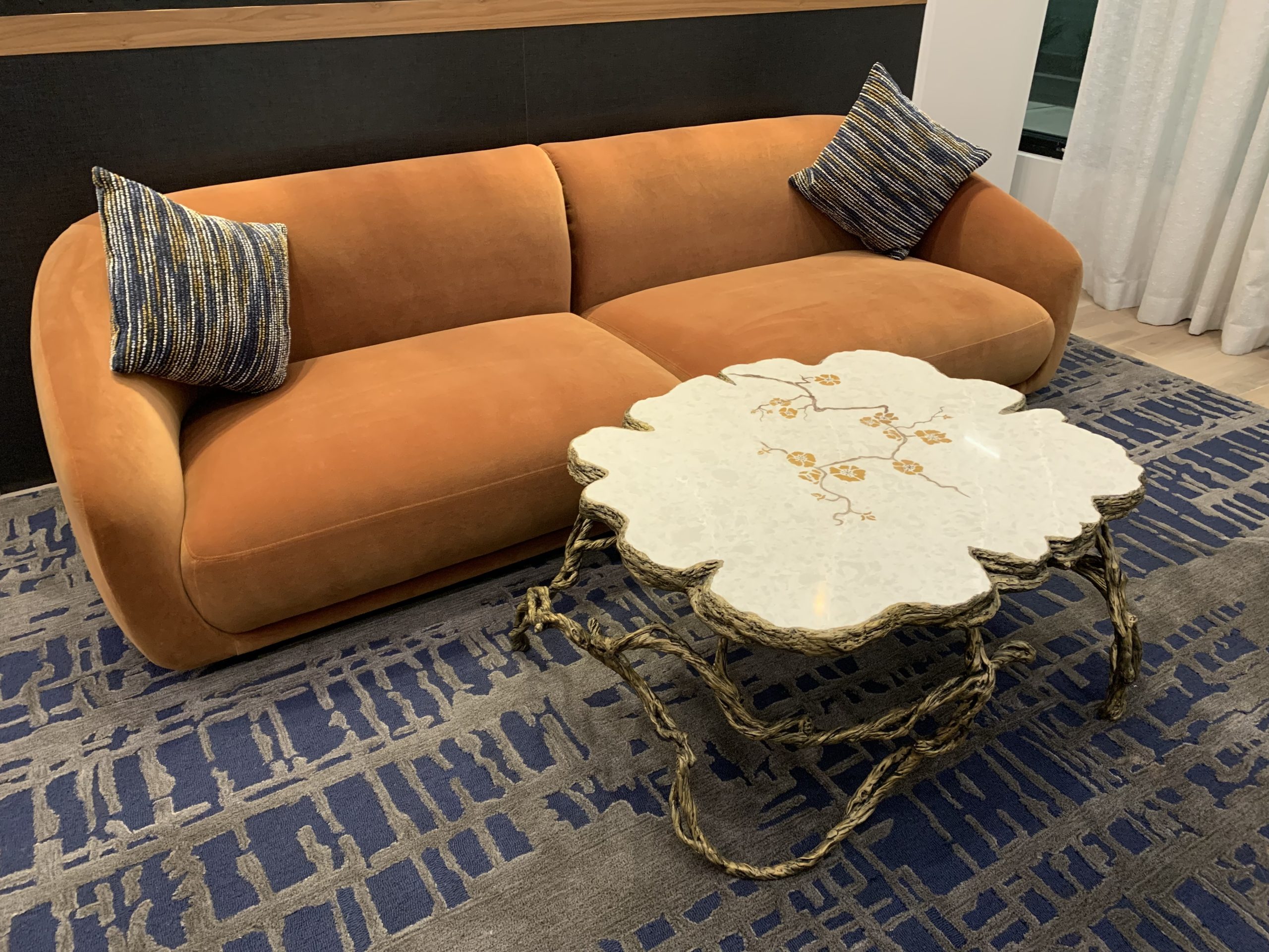 Vintage Sculptural Coffee Table in White Marble with Gold Inlay